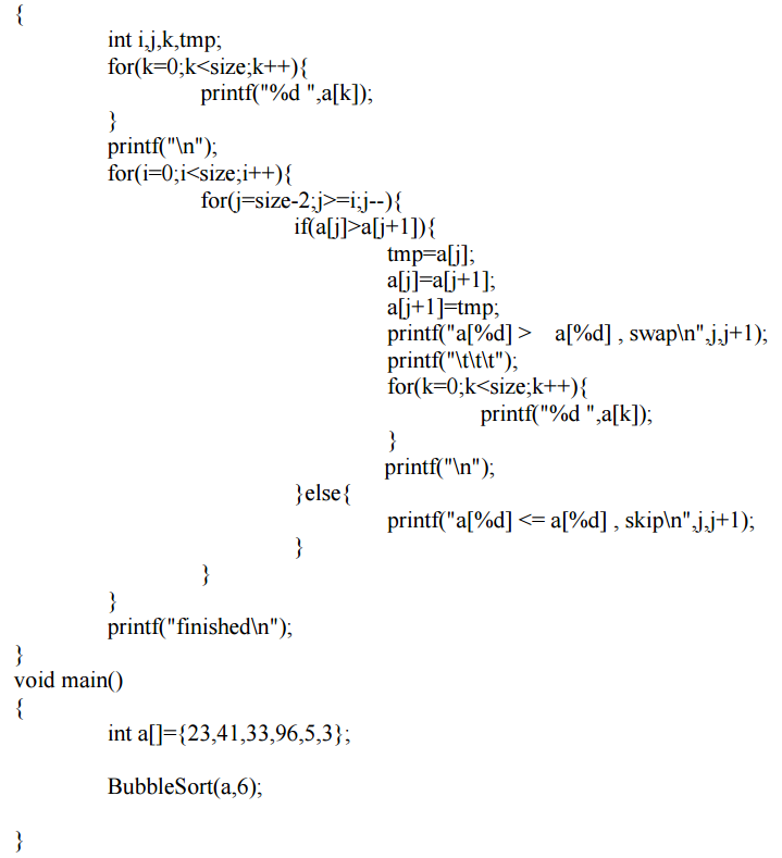 【已刪除】一、試執行下面 Bubble Sort 排序程式,請按照 printf 指令印出數字排序的過程。(20 分)