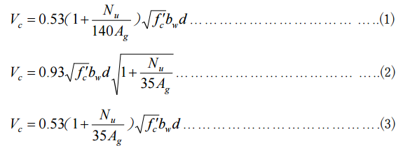 【已刪除】⑵依據我國結構混凝土設計規範,有軸力作用之 RC 構材,其混凝土之剪力計算強 度 V