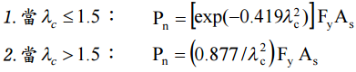 【已刪除】⑵依據我國鋼結構極限設計法規範,構材之標稱軸壓強度可依以下兩式之一計算: