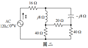 【已刪除】二、試求圖二所示單相交流電路中之電流 I。(15 分)