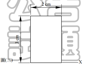18. 如圖(三)所示,X 軸通過一長方形面積之一短邊。若長方形面積之邊長分別為 3 cm 及 2 cm, 則此長方形面積對 X 軸的面積慣性矩的大小為多少 cm