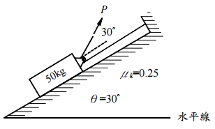 =0.25,斜面與水平的夾角θ=30°,重 力的方向為垂直向下。若不計細繩、滑輪的質量及滑輪的摩擦力,試求該繩索拉力 P的大小。(20 分)