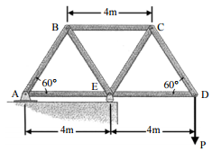 【已刪除】一、如圖所示,已知桁架各桿件之最大容許張力為 10kN,最大容許壓力為 6kN,試求在 接頭 D 點所能承載之最大載重 P。又若於 D 承載一向下之集中力 8kN 時,則桁架有 那些桿件會受損?(25 分)