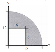 【已刪除】二、求圖示四分之一圓挖空方形形狀(所標示尺寸之單位為 cm)之形心座標(