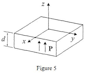 11. There is an infinite dielectric slab lying on the x-y plane, which has an uniform polarization P along the z-direction, as shown in Fig. 5. The thickness of the slab is d. What is the electric field inside the dielectric slab?