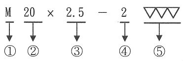 二、問答與計算題:1. 有一公制螺栓規格為“2條 ”,請說明①~⑤項代表意義。