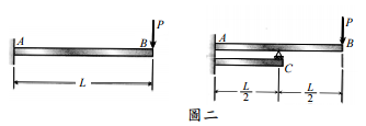 【已刪除】二、如圖二所示之懸臂樑 AB 於端點 B 承受一荷重 P,今欲以一短樑 AC(長