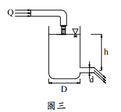 【已刪除】三、如圖三所示,直徑 D =1.2 m 的水桶壁面有一直徑 d = 0.15 m 的圓孔,水經由此圓孔穩 定的排放。試求流入水桶內的流率為多少時可以保持水位不變,h = 2.4 m。(20 分)