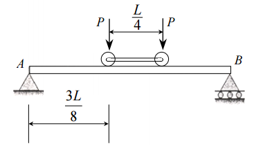 【已刪除】五、兩輪相距 L/4 ,且位於簡支梁跨距之中間位置,如圖所示,試用力矩-面積法(momentarea method)求 A 點之轉角及梁之最大撓度。(20 分)