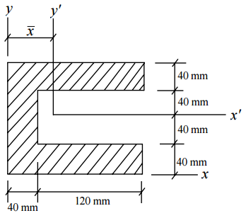【已刪除】一、試計算圖中ㄈ字形面積之形心(centroid)座標 x 與其對形心座標軸y'之慣性矩Iy' ( moment of inertia)。(20 分)