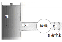 定義為[次要水頭損失 流速水頭]。試求管中流速為何?輪機水頭為何 ?若輪機效率為 0.800,試求輪機輸出馬力為何?1 馬力=746 N·m/s。(25 分)