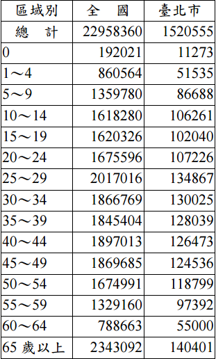 【已刪除】二、民國 96 年全國及台北市人口年齡分布如下表,試算全國及台北市人口扶養比。 (30 分)