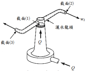 【已刪除】三、如圖所示,灑水龍頭並未旋轉,入流量Q =1.00 l/s 。截面(2)為出口,其截面積 A