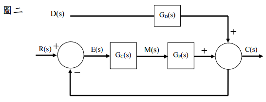 ⑵在圖二中若以一比例控制器進行控制圖三之系統,則圖二中之 D(s)、R(s)、E(s)、 G