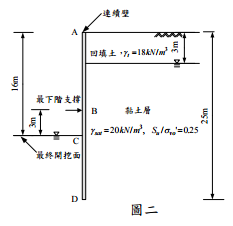 【已刪除】⑵為提高其安全係數,擬於被動土壓力側(開挖面內側)進行地盤改良,若改良區 土體之平均單位重為γm = 21.5 kN/m