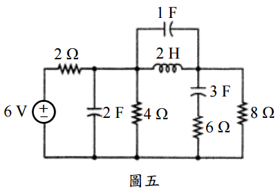 【已刪除】五、如圖五之穩態電路所示,試求分別儲存於各電容(1F、2F、3F)與電感(2H)之能 量。(20 分)