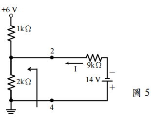 【已刪除】五、如圖 5 所示,試求由節點 2 及 4 向左看的戴維寧等效電路(Thevenin’s equivalent circuit),並由此戴維寧等效電路求電流 I。(20 分)