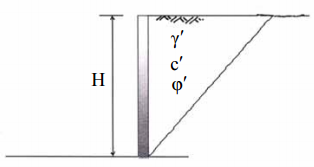 【已刪除】二、如圖所示,已知土層因開挖而導致側向主動土壓破壞,假設土體破壞時之應力條件 滿足莫爾庫倫破壞準則(Mohr-Coulomb failure criterion) τ