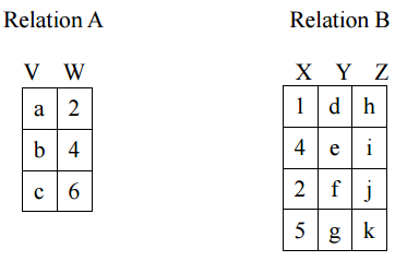 Relation C 由以下的式子產生 C ← JOIN A and B where A.W > B.X 請寫出 Relation C 的表格。(20 分)