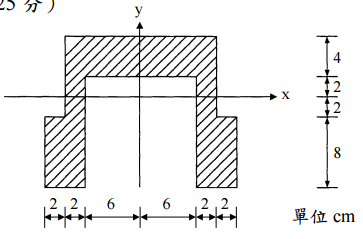 【已刪除】二、設有如圖所示斜線部分之斷面,試求對應於 x 軸及 y 軸之斷面慣性矩(moment of inertia),I