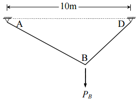 【已刪除】一、如圖所示,纜繩系統,其中 AB 纜繩長 8m,BD 纜繩長 6m。當 PB = 25 kN,求 AB 及 BD 纜繩所受張力。(25 分)