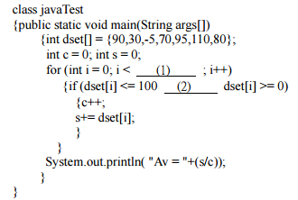 ⑴ 填入下列 Java 程式的空格(不可是常數),使該程式能夠印出陣列 dset 中所有值 在 0 至 100 的數的平均值。(請在試卷上作答)