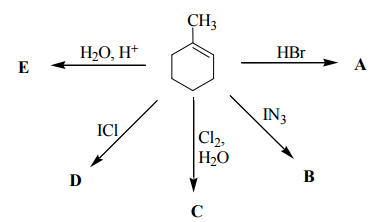 【已刪除】四、試寫出 1-甲基環己烯(1-methylcyclohexene)的各加成反應之產物 A 至 E 的結構式。 (10 分)