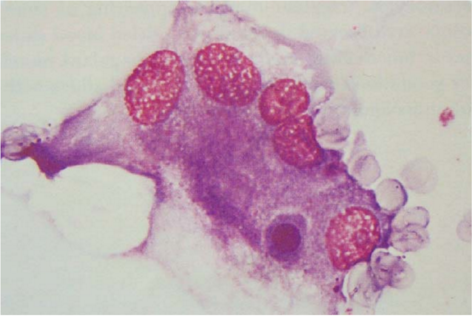 12.下圖賴特-任查(Wright-Giemsa)染色骨髓抹片中之大細胞最可能是下列何者?