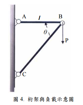 四、如圖 4 所示之桁架,AB桿長為l,AB桿與BC桿夾角為