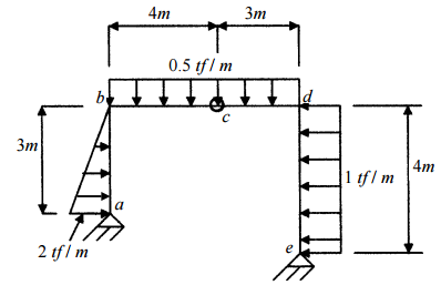 【已刪除】三、下圖之剛構架在 a, c, e 均為鉸接,請計算 a, e 兩點的反作用力。(20 分)