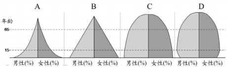 【已刪除】二、以下各圖(A-D)為人類人口金字塔的類型,請從生態學觀點,分別說明各圖的特 性,並說明其發展潛力。(20 分)
