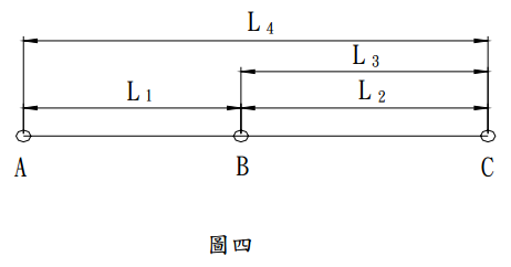 【已刪除】五、如圖四所示,A、B、C三點在一條直線上,測得距離之觀測值分別為L1=100.20m、 L2=115.45m、L3=115.49m、L4=215.72m。假設觀測量之間互相獨立且精度相同, 請用最小二乘法計算AC距離之平差值。(20 分)