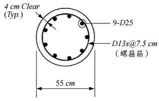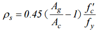 【已刪除】四、依結構混凝土設計規範,螺箍筋之體積比ρ s不得小於下式之值: