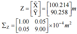 【已刪除】三、一平面控制網共有 10 個未知點(即 20 個未知數),利用 50 個角、邊觀測量平差 後得到其中一點之座標估值及其協變方矩陣: