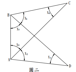 【已刪除】五、圖二表示 一個簡單之三角測量,一共觀測了 6 個水平角:X