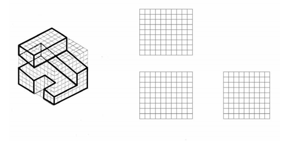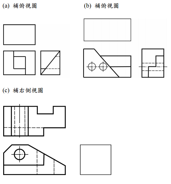 七、請依下列圖示,完成該立體圖之三視圖。(10 分)