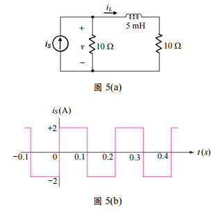 【已刪除】五、在圖 5(a)之電路中,獨立電流源is之波形如圖 5(b)所示,試求穩態電壓v(t)。(20 分)