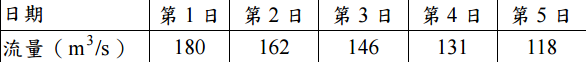 若地下水退水延續至第 16 日,試求當日之河川流量和地下水儲存量。(25 分)