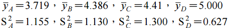 【已刪除】四、設有 A、B、C、D 四種不同氮肥種類,欲比較其對水稻穀重是否有差異,採完全隨 機設計,重複次數分別為 10、10、8、6,各試區之穀重(公斤/每小區)紀錄如下: