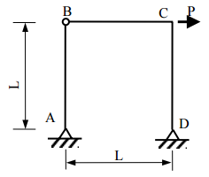 【已刪除】二、如圖所示剛架,A、D 兩點為鉸接(hinge),B 點為內鉸接。僅考慮彎矩效應,試 求 C 點之水平位移與旋轉角。(25 分)