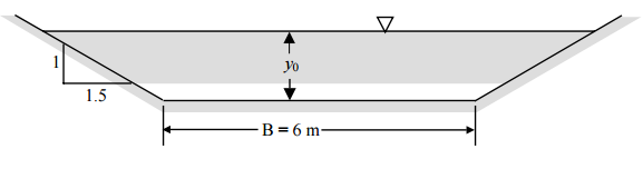 的水。如果溝渠為底部寬度 B=6 m 且側邊坡度為 1:1.5 之梯形斷面,試 求出等速流之水深。(20 分)
