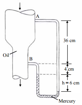 【已刪除】二、如下圖所示,垂直管路中之流體(Oil)比重為 0.95,應用水銀(Mercury)壓力計量 測 A 點與 B 點之壓力,水銀比重為 13.6,請問 A 與 B 點之壓力差為何?(20 分)
