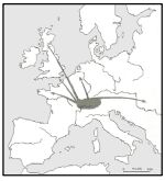 9. 右圖顯示的是歐洲歷史上哪一件大事的發展路線?(A)13世紀歐洲通商貿易路線 (B)14世紀黑死病的傳播路線 (C)14世紀後文藝復興的發展 (D)16世紀喀爾文教派的傳播