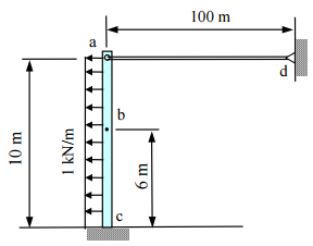【已刪除】二、如圖所示之結構受一 1 kN/m 之均佈力作用,其中ac為梁(beam)構件,ad為連桿 (linkage),c點為固定端(fixed end),請計算b點之水平位移Δ