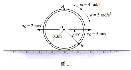 【已刪除】二、一個呼拉圈在粗糙的表面以角速度ω = 4 rad/s,角加速度α = 5 rad/s