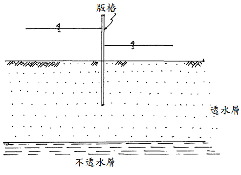 【已刪除】三、試於下圖透水層中繪製流線網示意圖,並註明圖中之等勢能線和流線。(25 分)