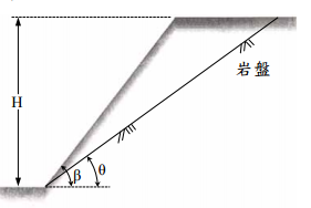 ,邊坡之坡高H=6 m,坡角β=50°,θ=25°。試求此邊坡 之安全係數。(25 分)