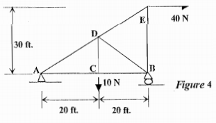 【已刪除】4. Find al l member (bar) forces of the following plane truss as shown in Figure 4. (25%)