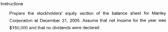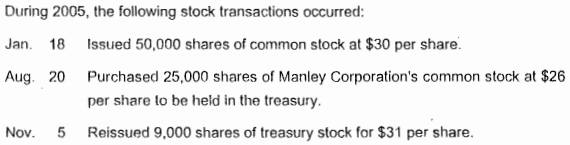 【已刪除】五、The stockholders' equity section of Manley Corporation's balance sheet at December 31, 2004, appears below: