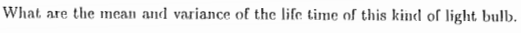 (iii) A light, bulb has been used for one year, whal; is the prohabilil;y that I;lie light; bulb can be used for antlier year,ami wliai, is he expectation of Ihe life time of this light, bulb.